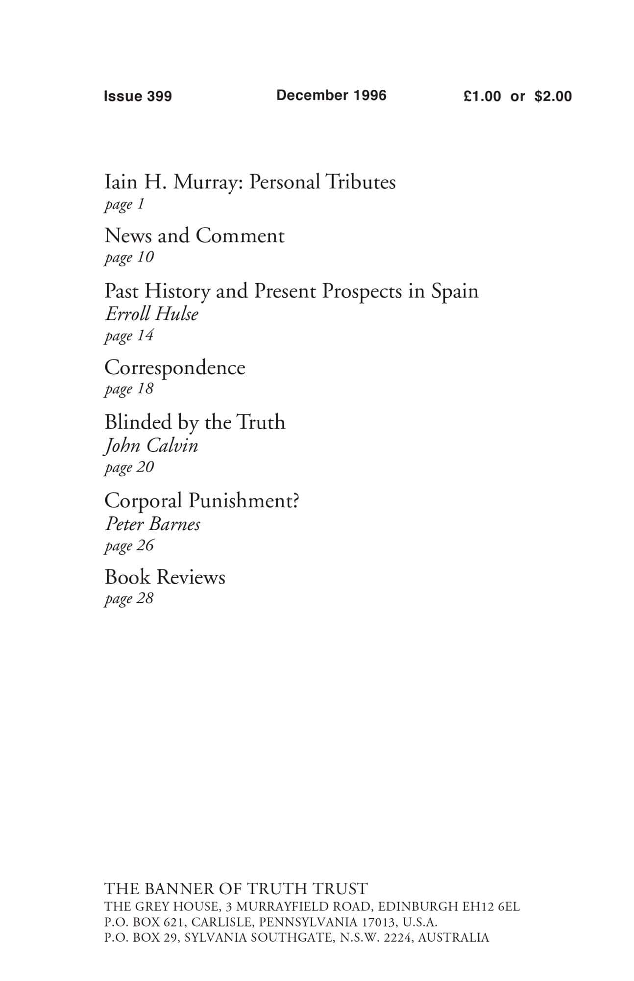 | Iain H. Murray: Personal Tributes — Murray, Iain H | 1-9 |