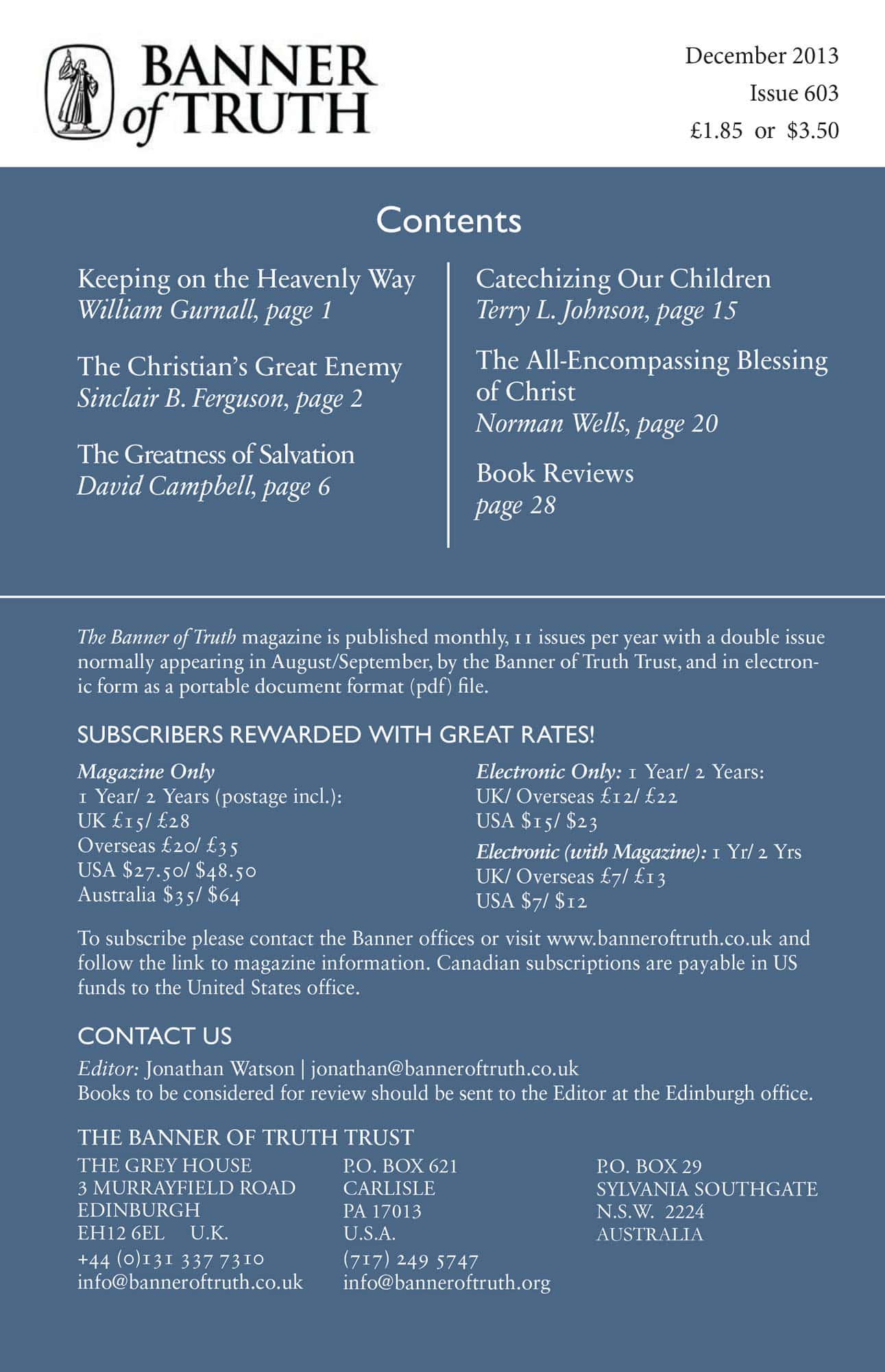 Subscribe to the Banner of Truth Magazine for 11 edifying issues each year (including summer double issue).