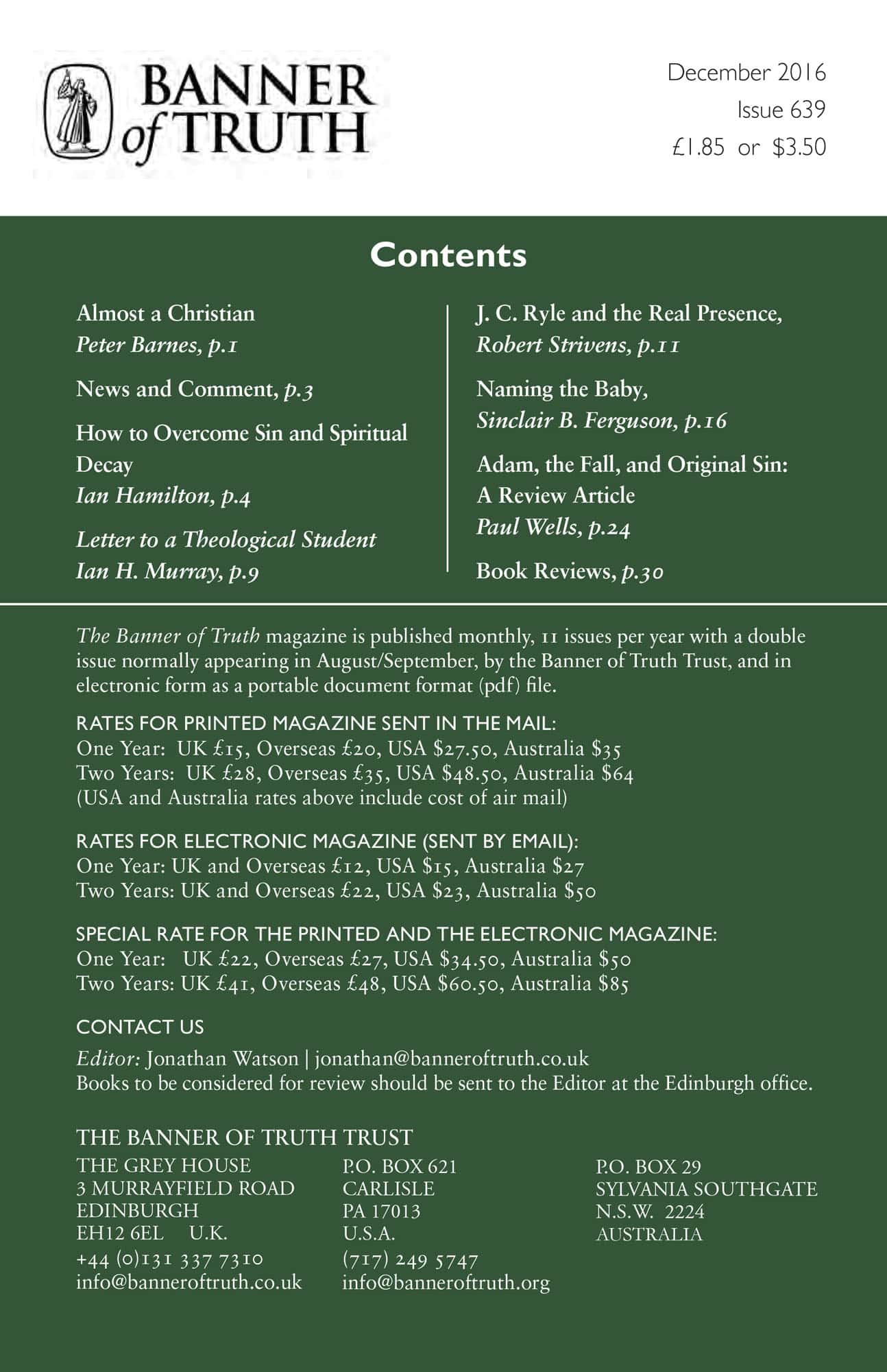 Subscribe to the Banner of Truth Magazine for 11 edifying issues each year (including summer double issue).
