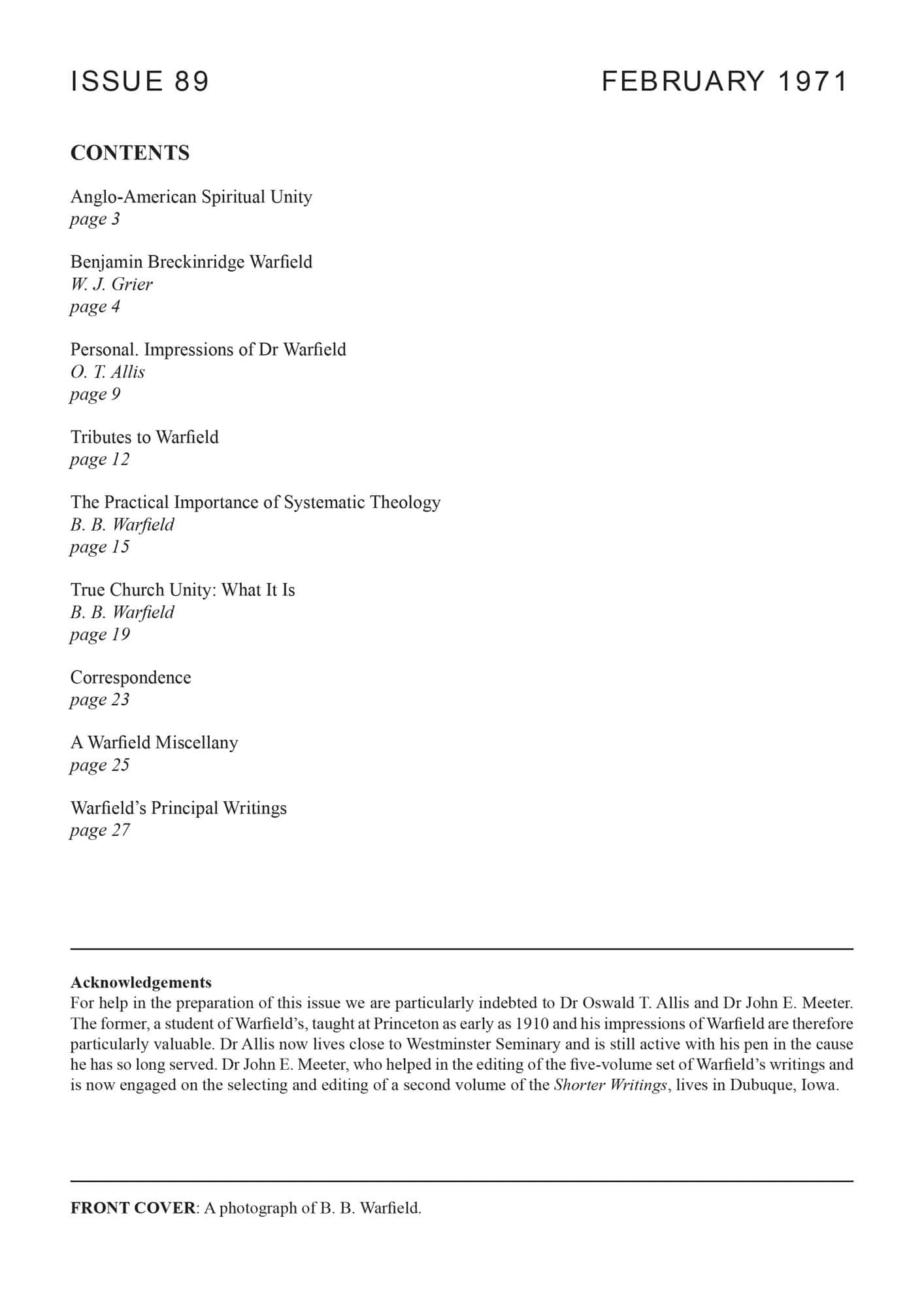 | Personal Impressions of Dr Warfield — Allis, Oswald T | 10-14 |