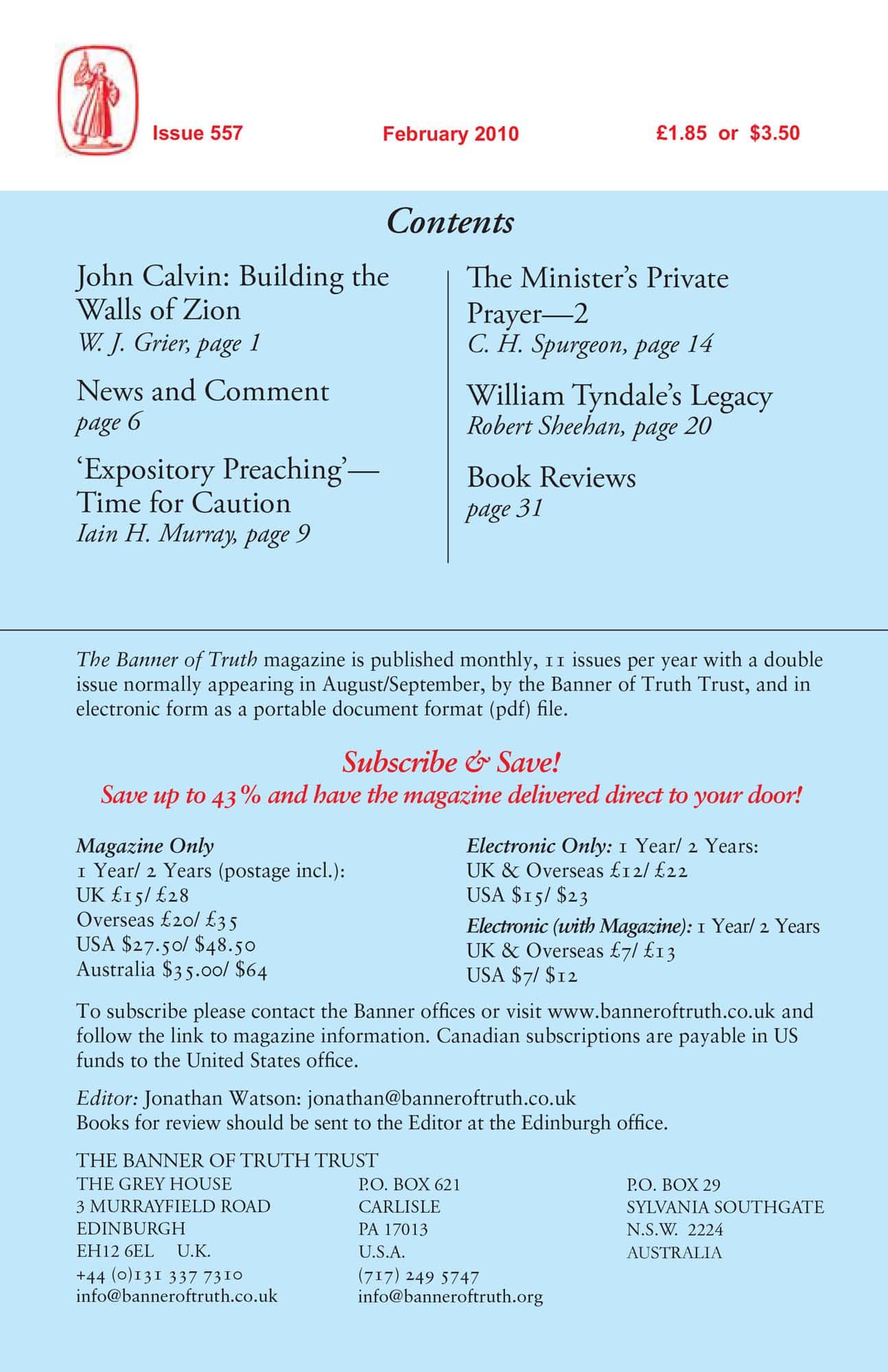Subscribe to the Banner of Truth Magazine for 11 edifying issues each year (including summer double issue).