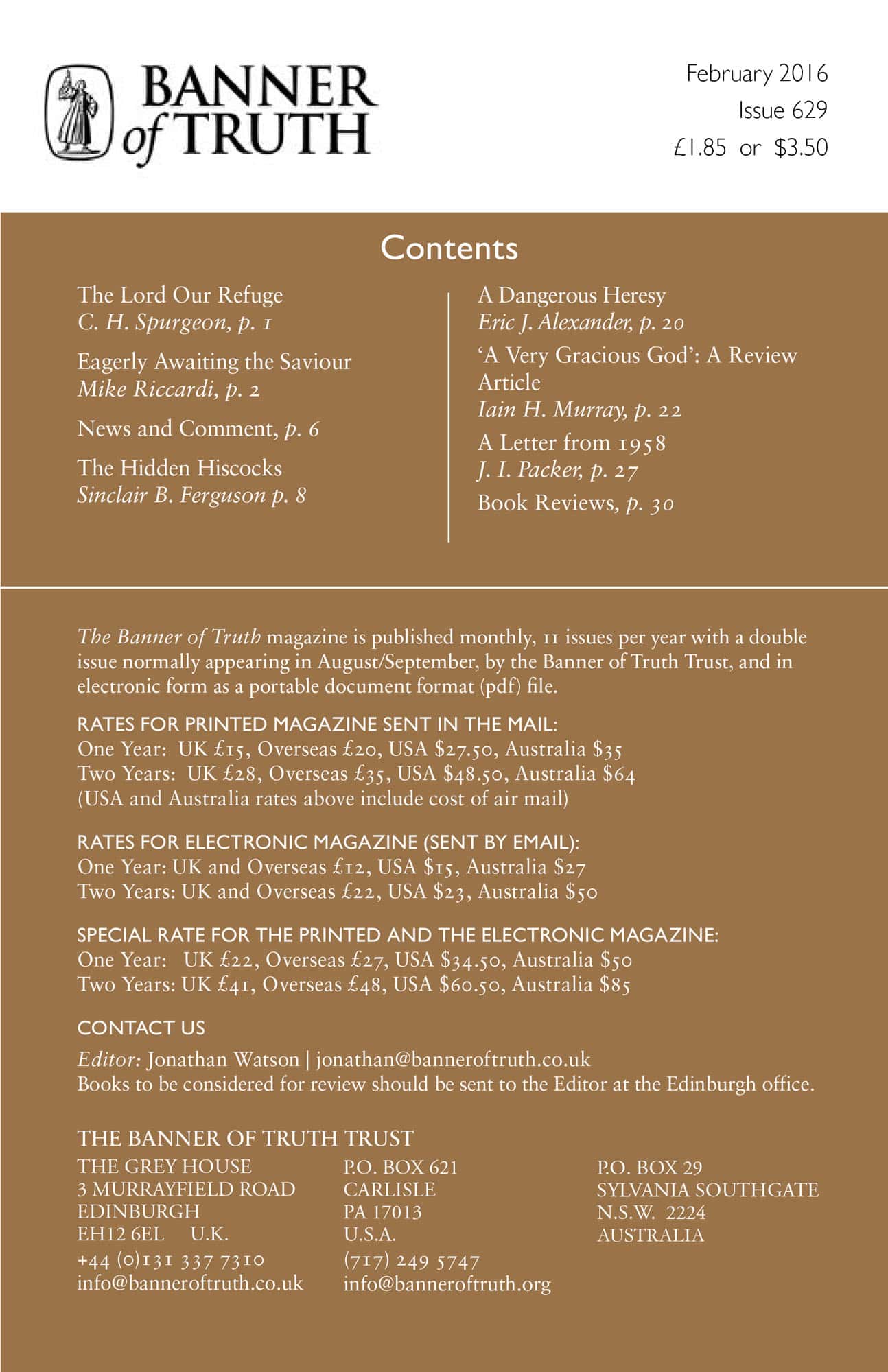 Subscribe to the Banner of Truth Magazine for 11 edifying issues each year (including summer double issue).