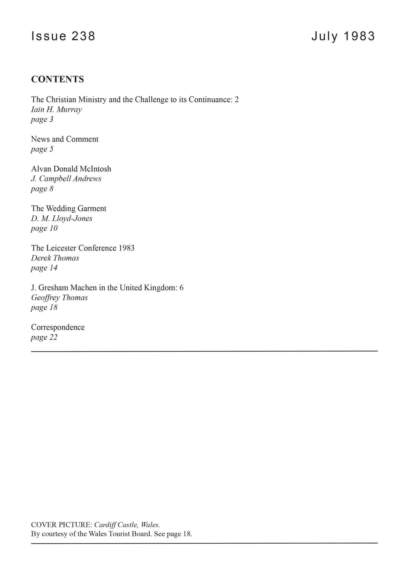 | Leicester Ministers Conference 1983 — Thomas, Derek | 19-22 |
