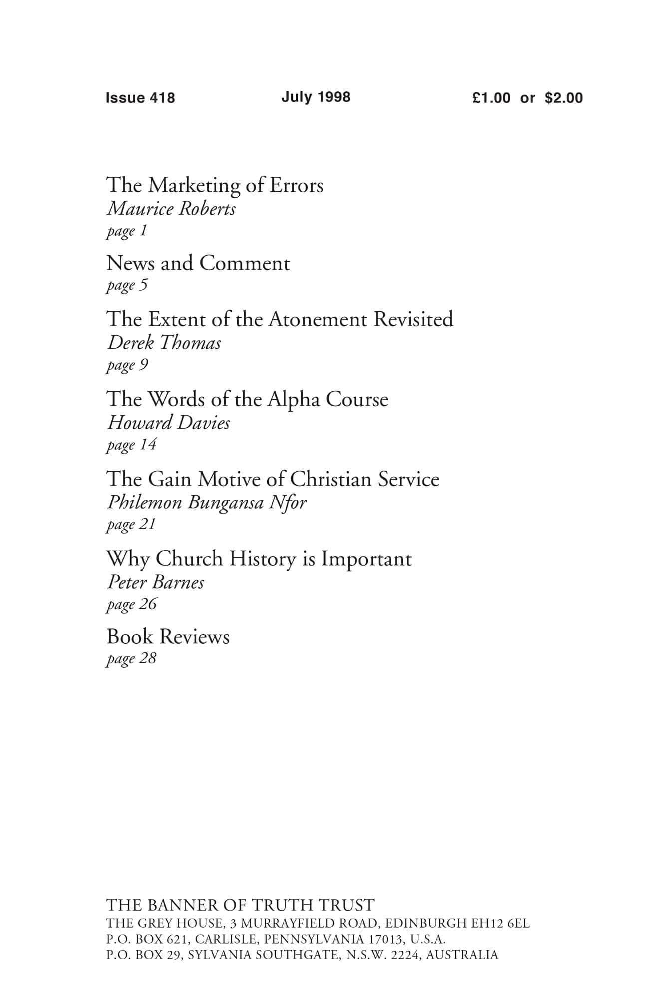 | Extent of the Atonement Revisited — Thomas, Derek | 9-13 |
