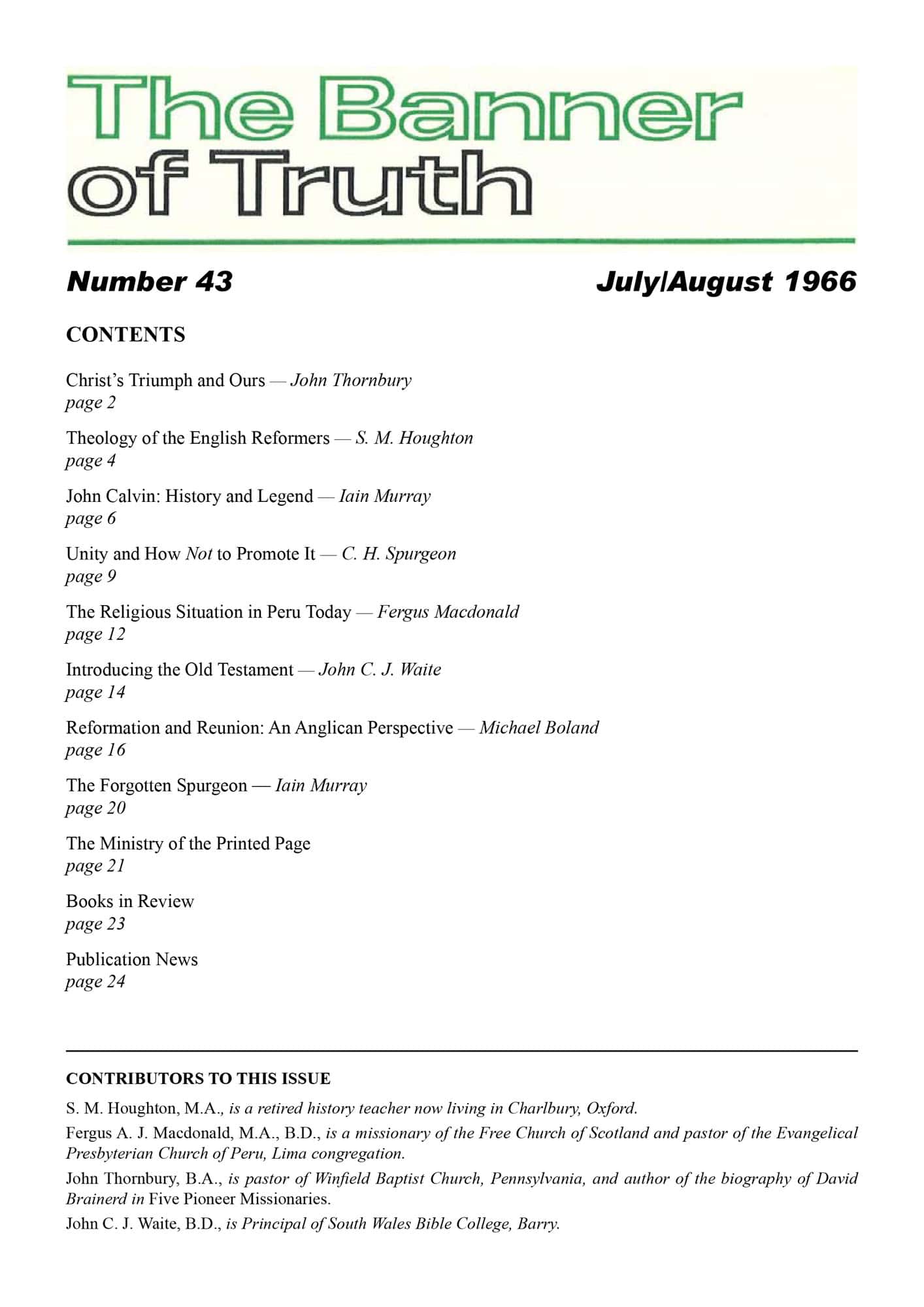 | Theology of the English Reformers: Review Article of book by P. E. Hughes — Houghton, S M | 4-5 |