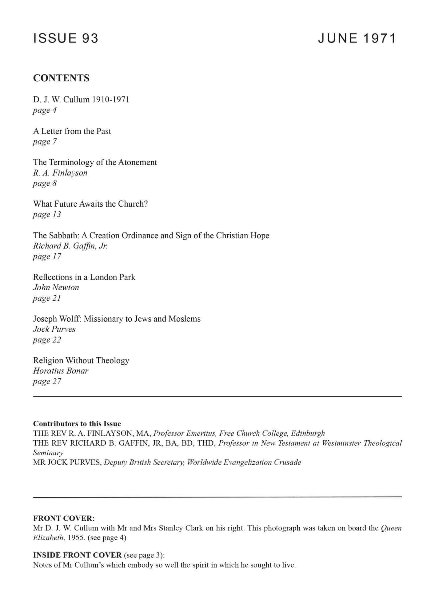 | Banner of Truth Trustee, D. J. W. Cullum 1910-1971 — Murray, Iain H | 1-5 |