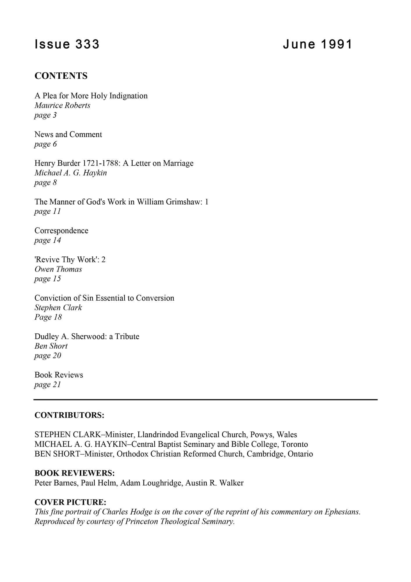 | Henry Burder 1721-1788: A Letter on Marriage — Haykin, Michael A G | 10-12 |