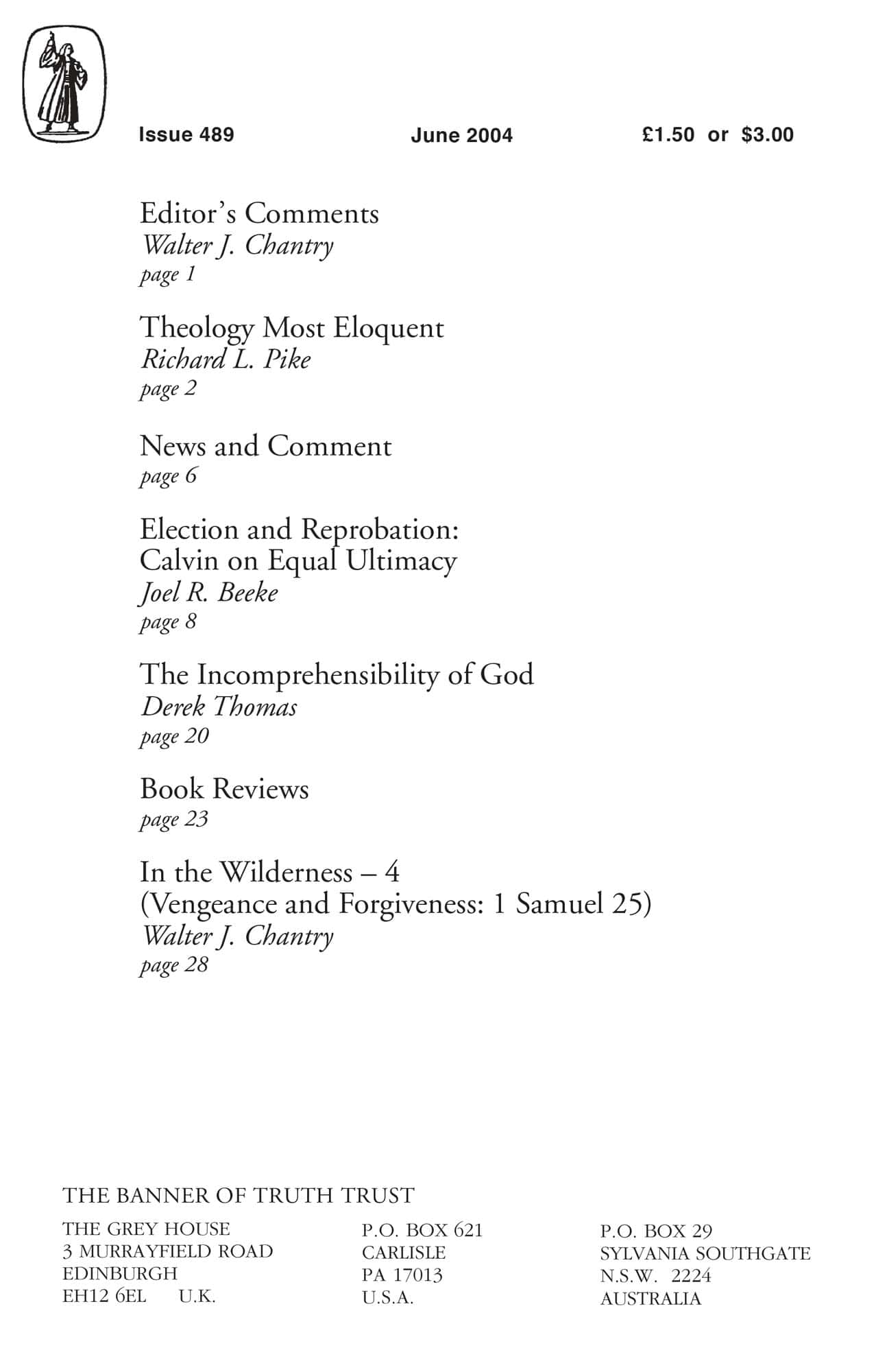 | Incomprehension of God — Thomas, Derek | 20-22 |
