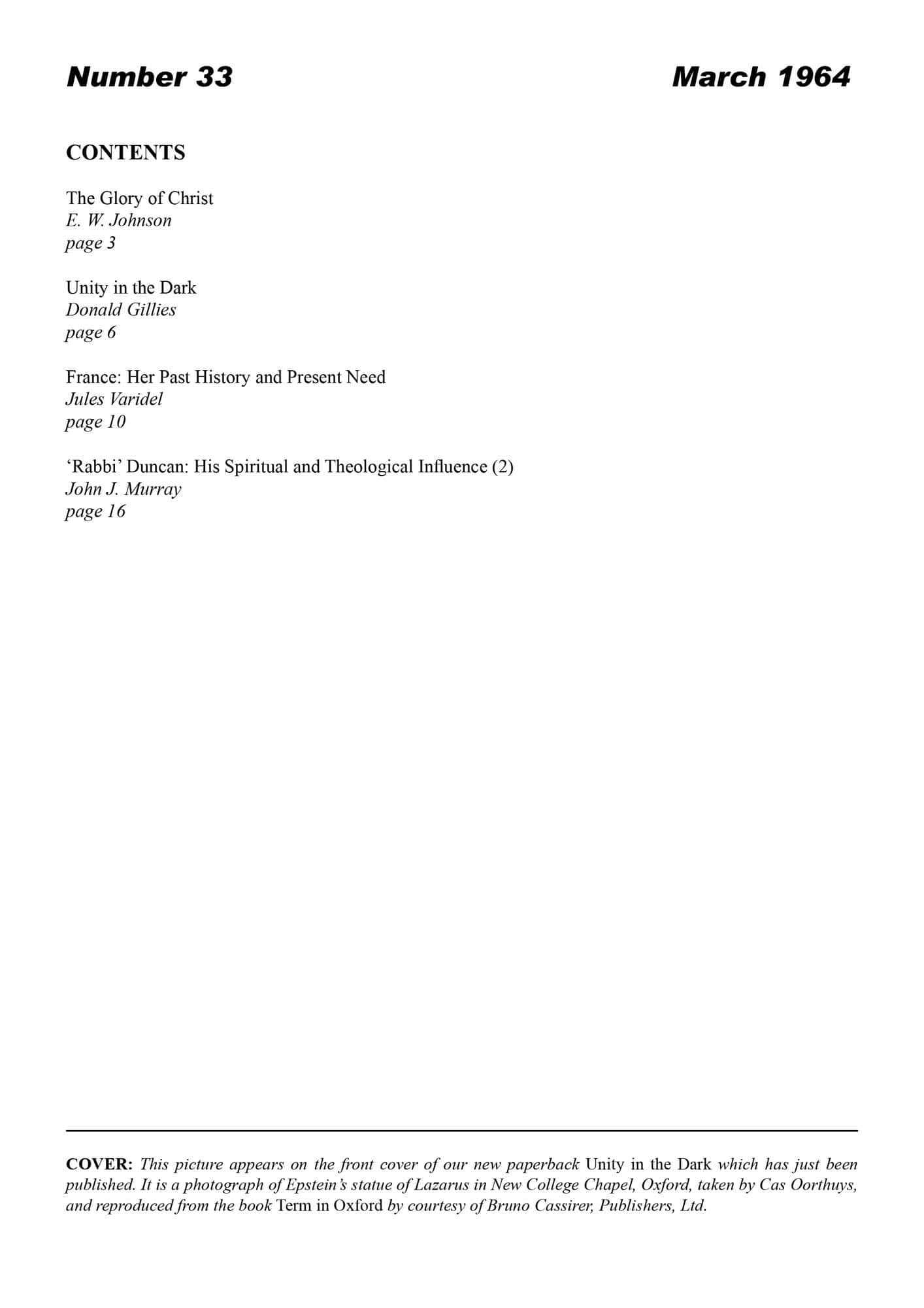 | Rabbi Duncan: his spiritual and Theological Influence (2) — Murray, John J | 24-32 |