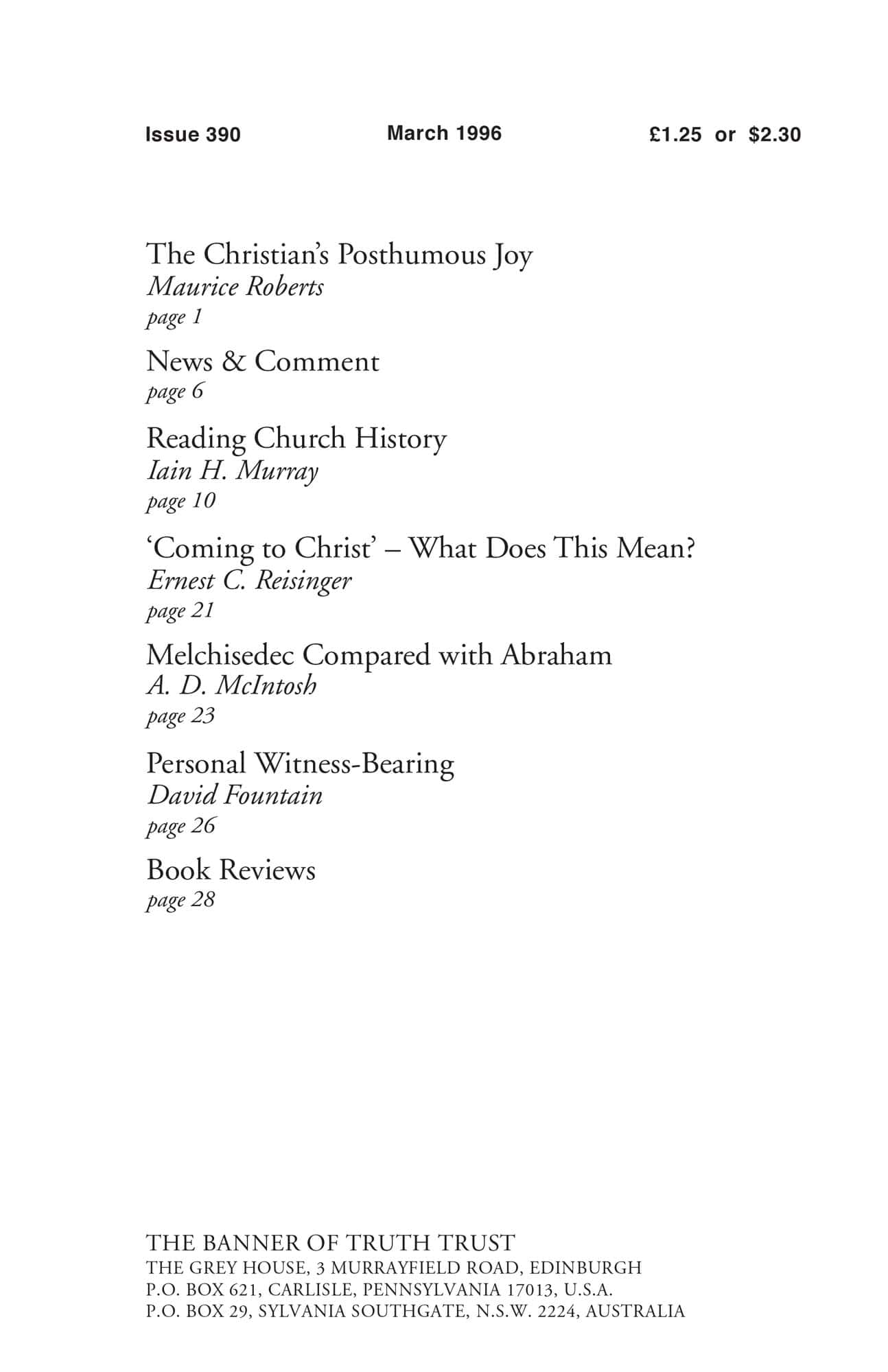 | Coming to Christ: What Does This Mean? — Reisinger, Ernest C | 21-22 |