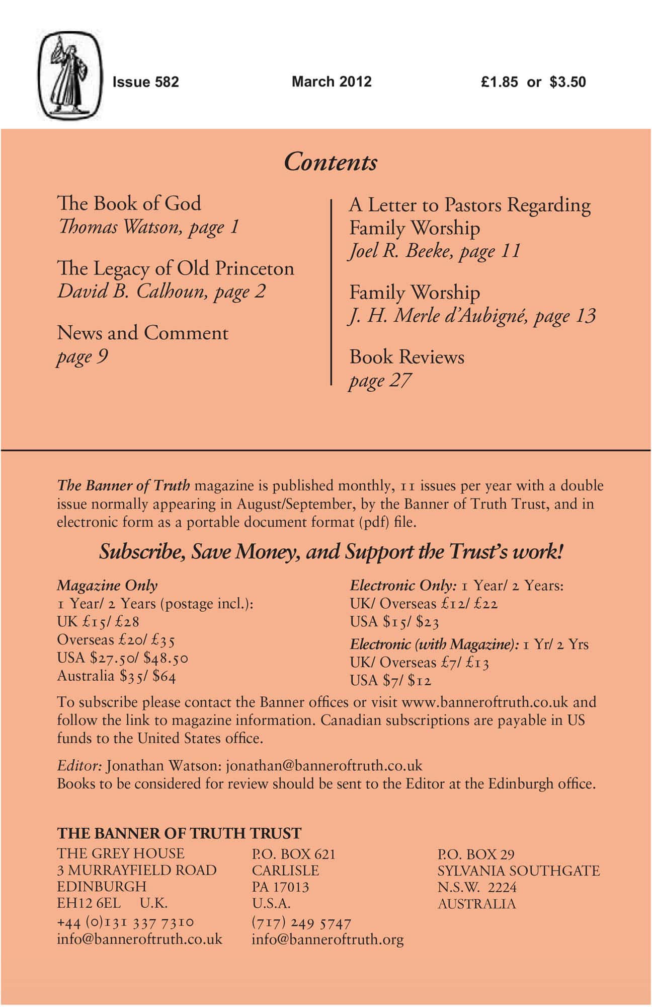 | Letter to Pastors Regarding Family Worship — Beeke, Joel R | 11-12 |