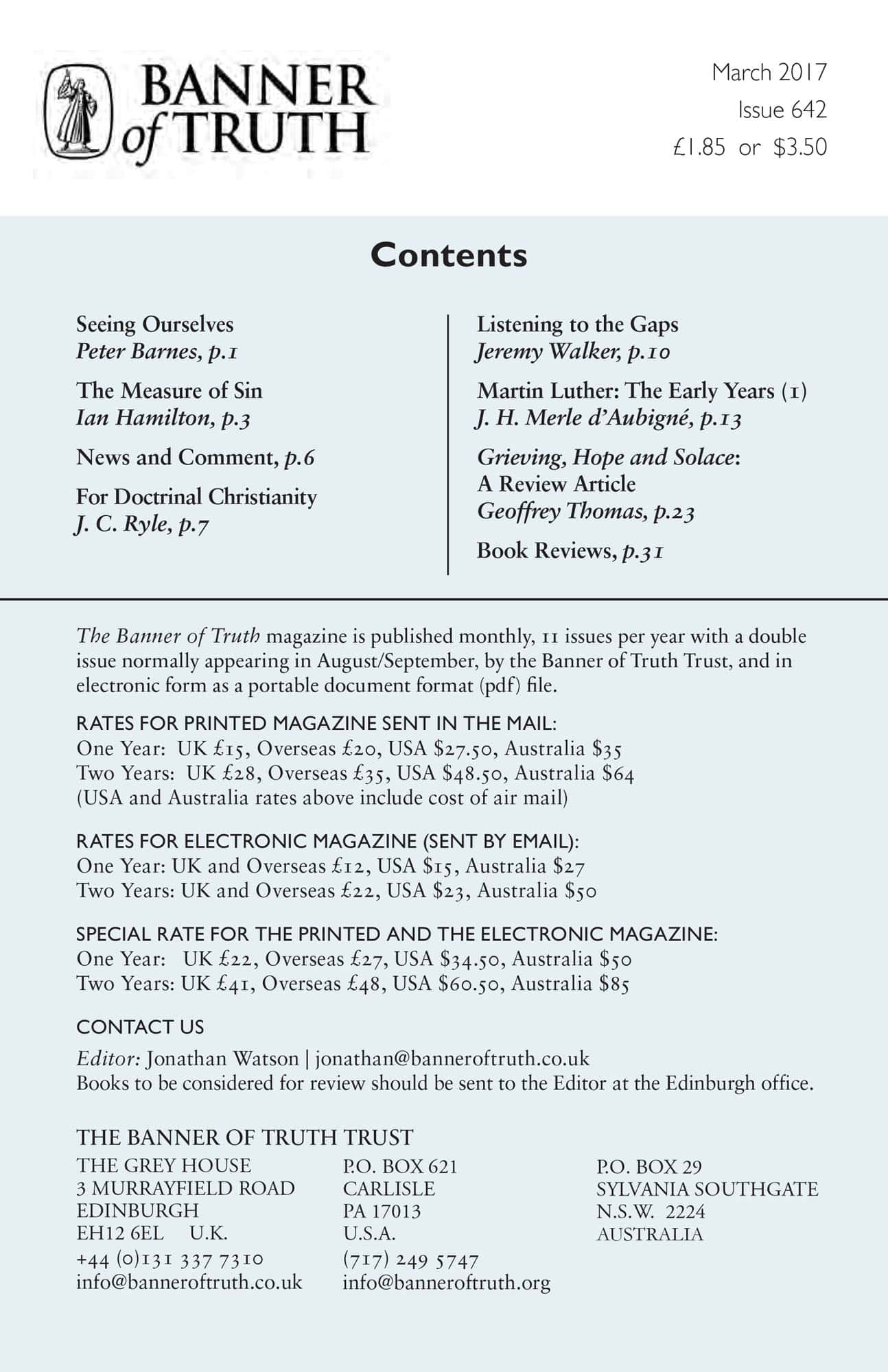 Subscribe to the Banner of Truth Magazine for 11 edifying issues each year (including summer double issue).
