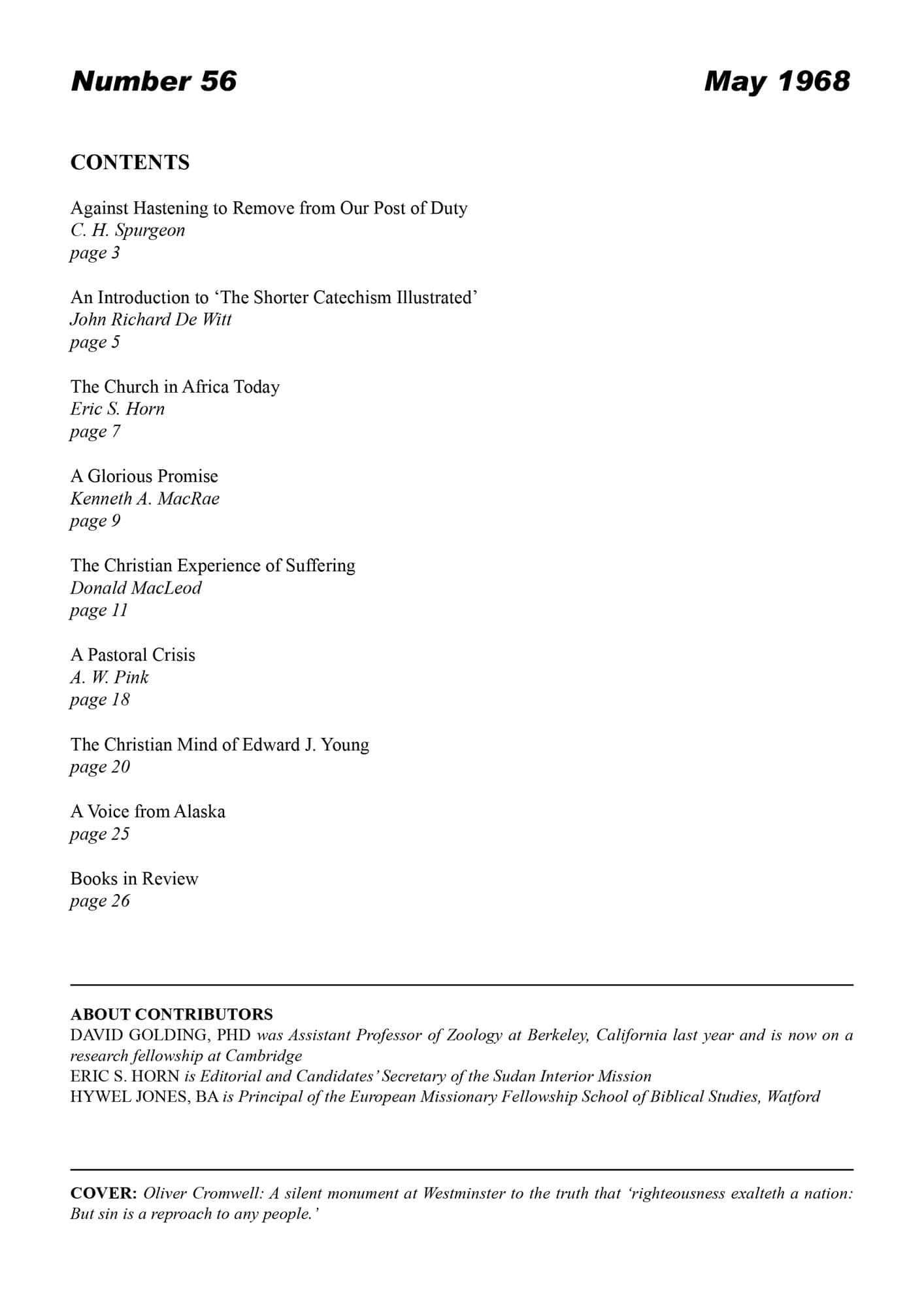 | Church in Africa Today — Horn, Eric S | 7-9 |