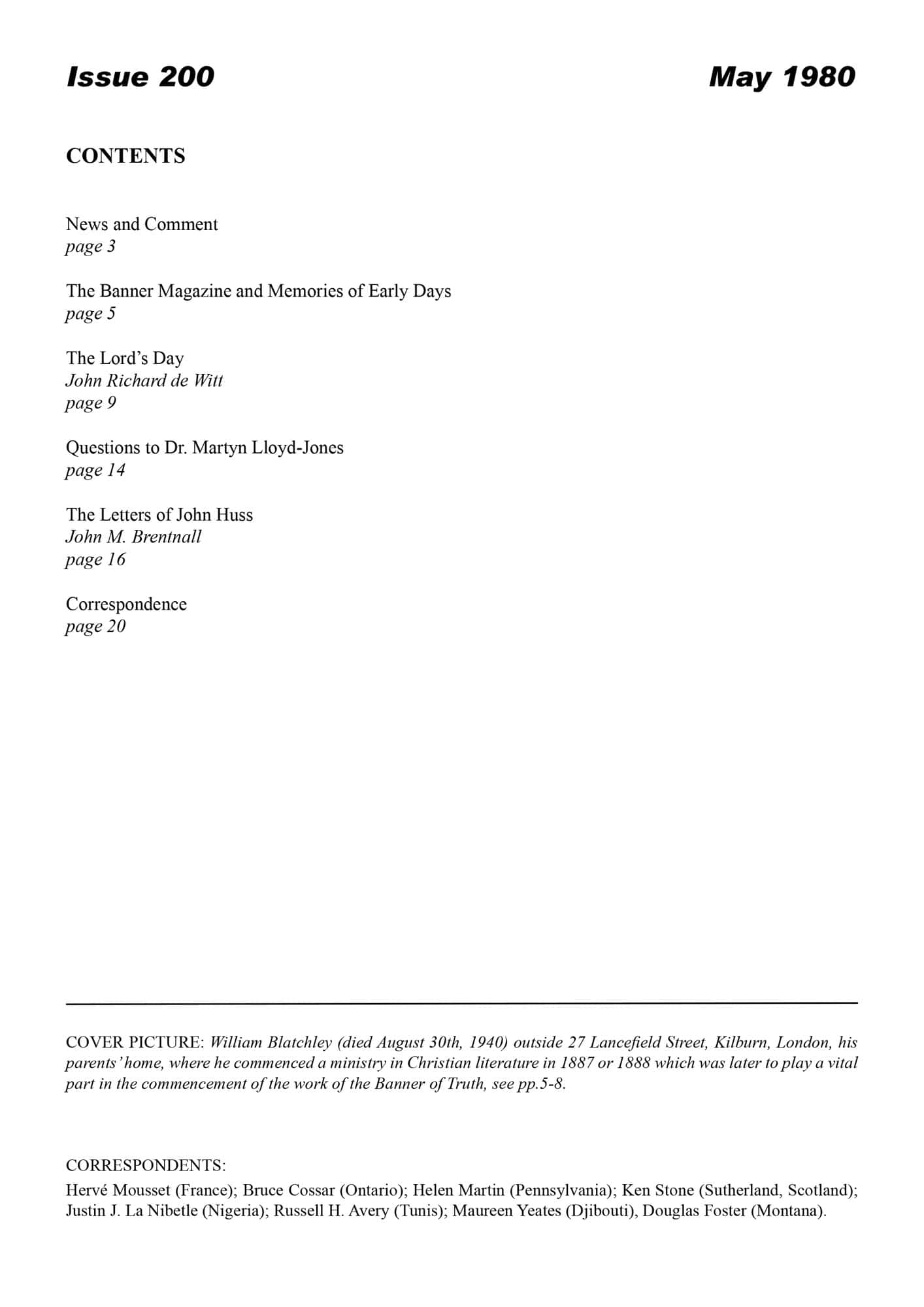 | Banner Magazine and Memories of Early Days — Murray, Iain H | 4-10 |