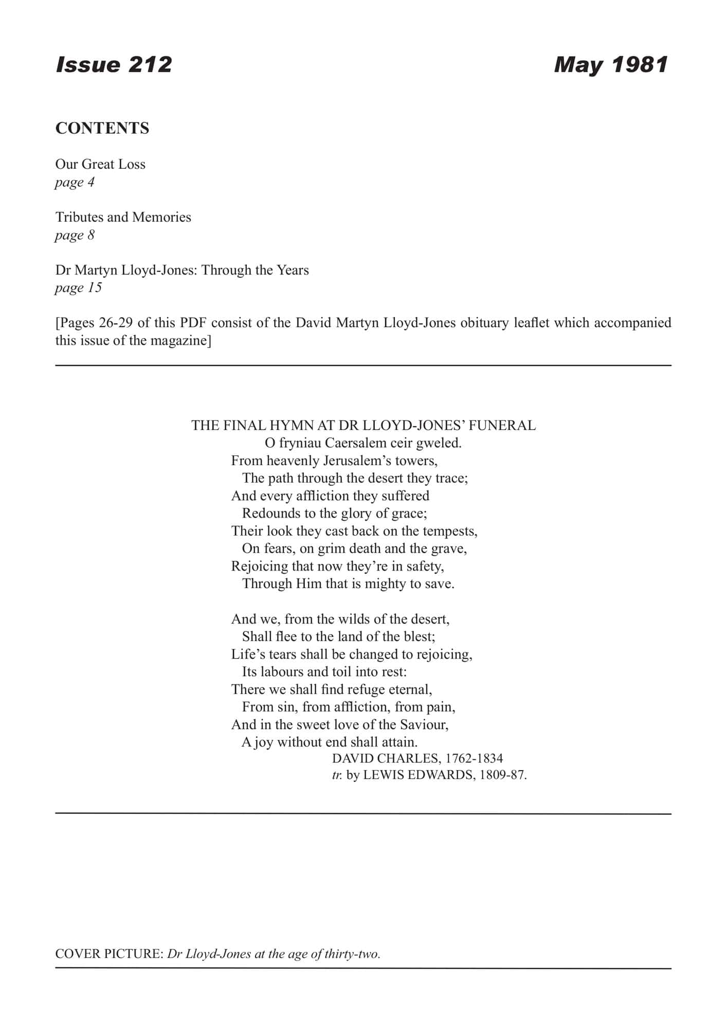 | Dr Martyn Lloyd-Jones through the Years — | 16-33 |