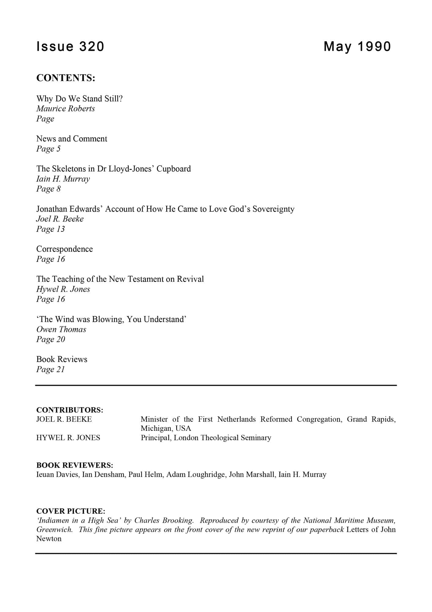 | Jonathan Edwards’ Account of How He Came to Love God’s Sovereignty — Beeke, Joel R | 15-18 |