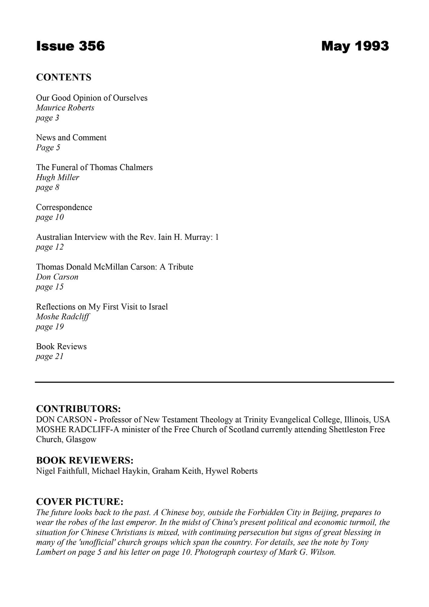| Australian Interview with Iain H. Murray (1) — | 13-17 |