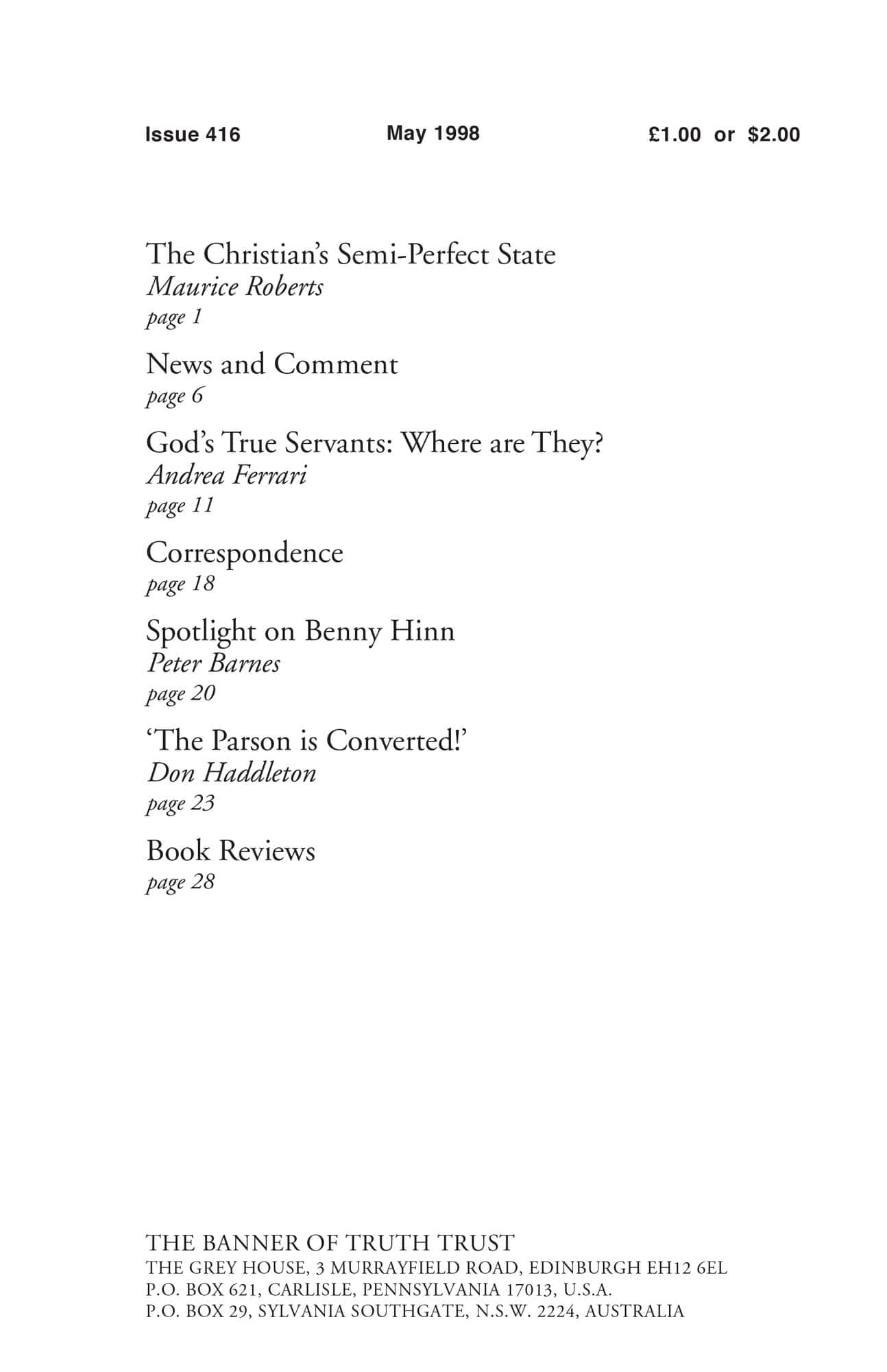 | God’s True Servants: Where are They? — Ferrari, Andrea | 11-17 |