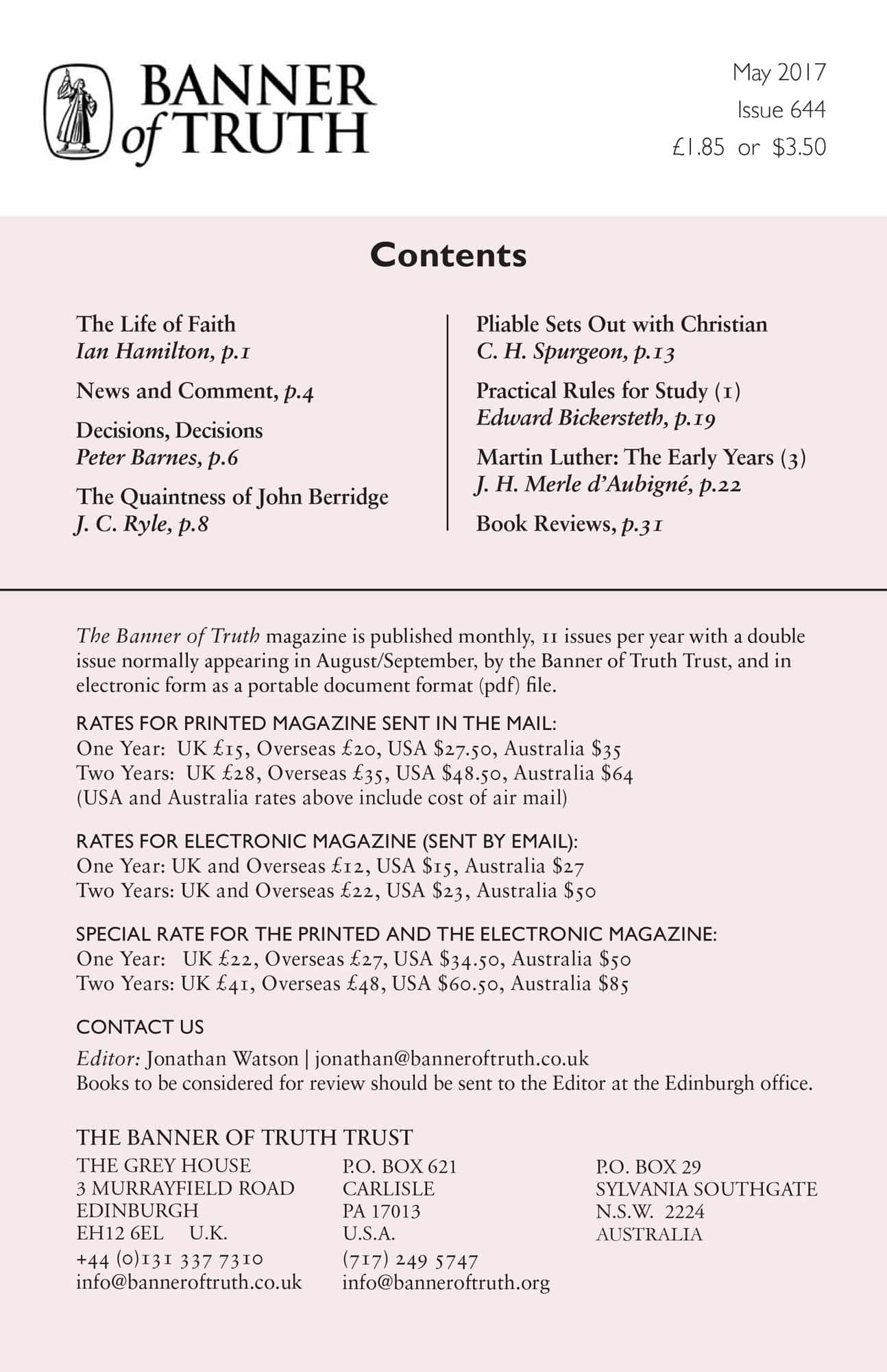 Subscribe to the Banner of Truth Magazine for 11 edifying issues each year (including summer double issue).
