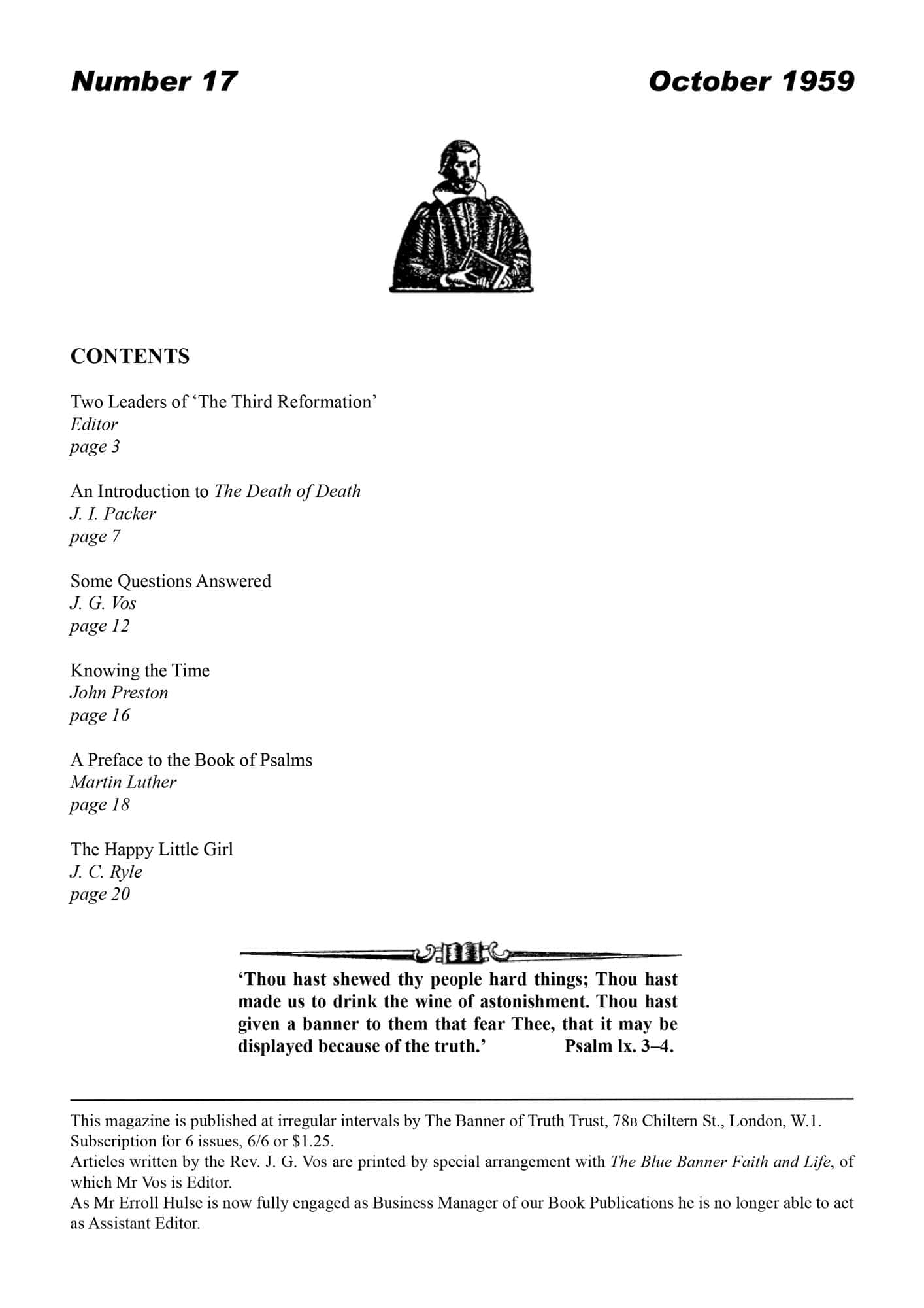 Subscribe to the Banner of Truth Magazine for 11 edifying issues each year (including summer double issue).
