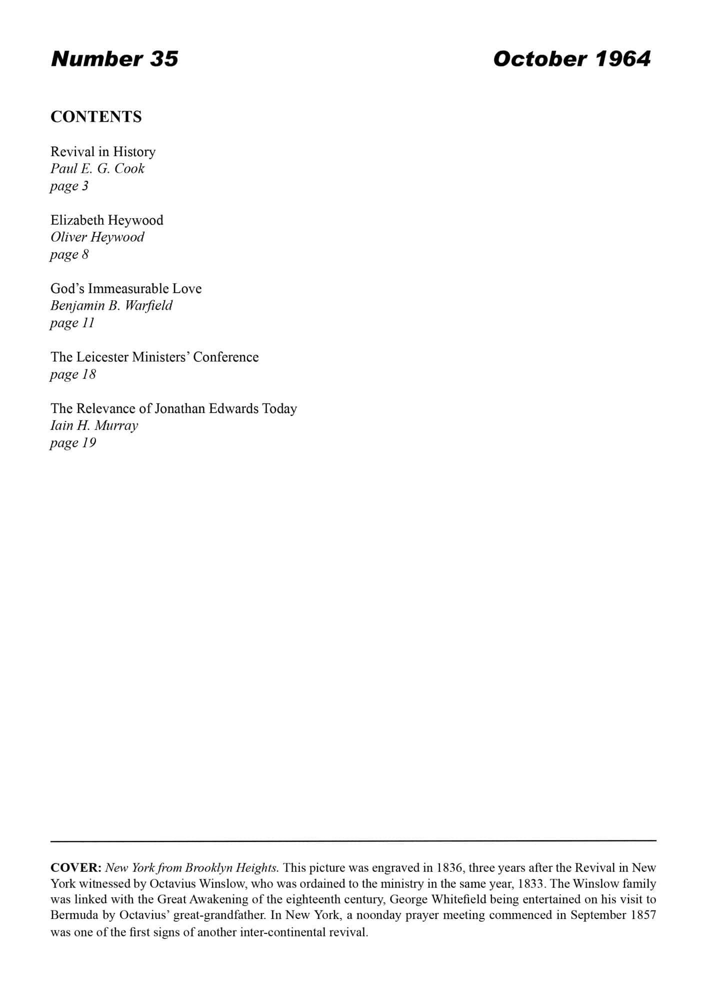 | God’s Immeasurable Love — Warfield, Benjamin B | 15-28 |