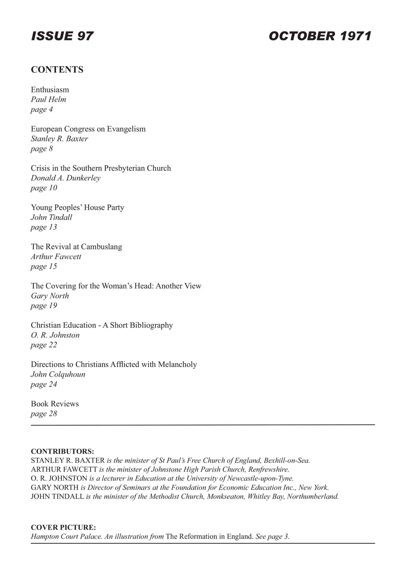 | Crisis in the Southern Presbyterian Church — Dunkerley, Donald A | 11-15 |