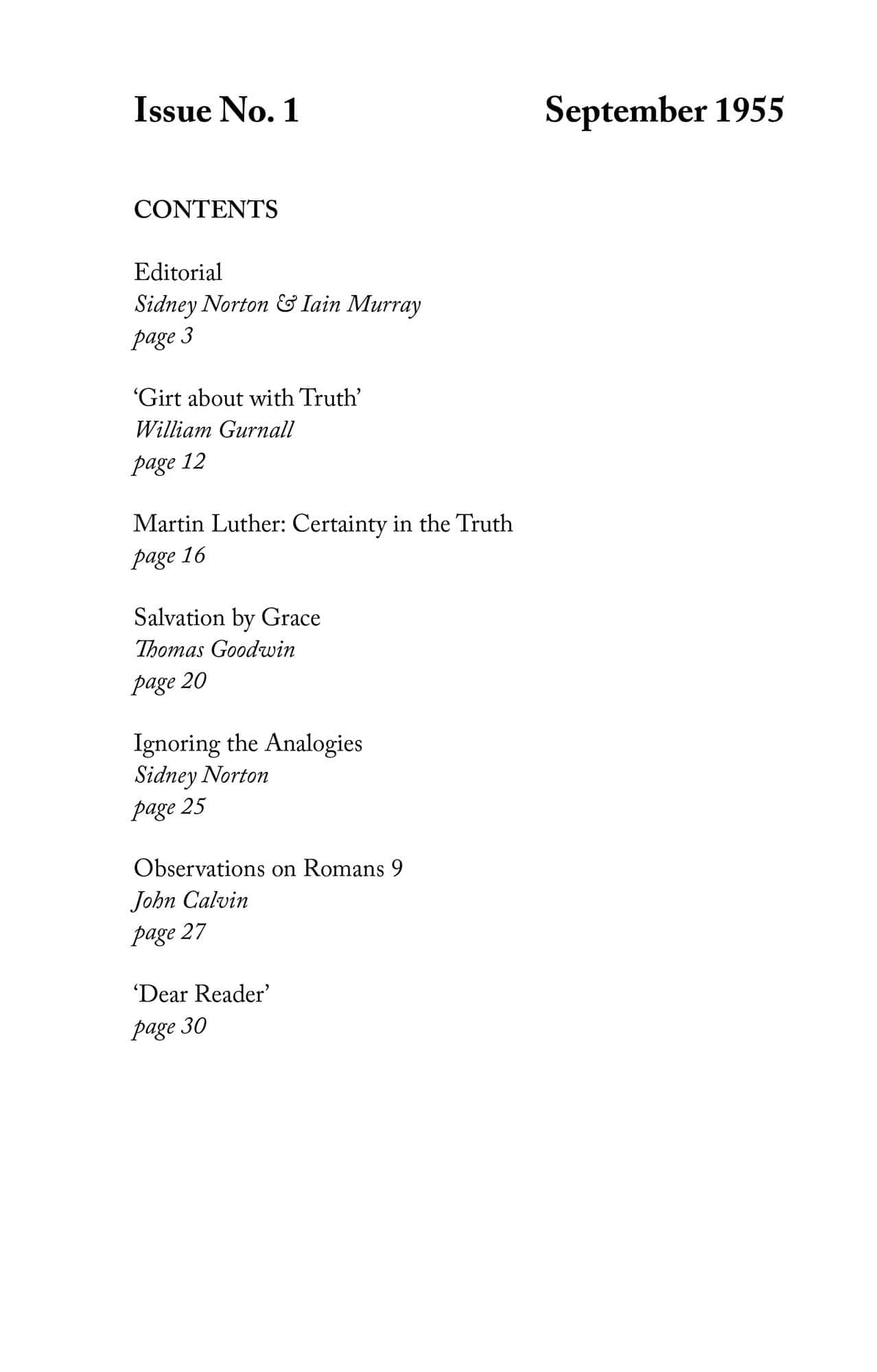 | Martin Luther: Certainty in the Truth — Murray, Iain H | 11-13 |