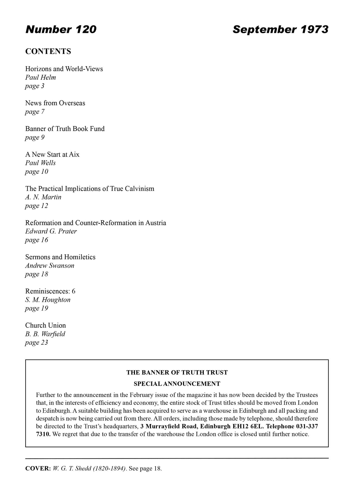 Subscribe to the Banner of Truth Magazine for 11 edifying issues each year (including summer double issue). Table of Contents Most Important Qualification for a Pastor — Alexander, Archibald 1-4 Crisis in the Church of Scotland — Murray, Iain H 9-12 Sure Source of Spurgeon’s Success — Watson, Jonathan 13-16 Lord, Where’s the Blessing? — […]
