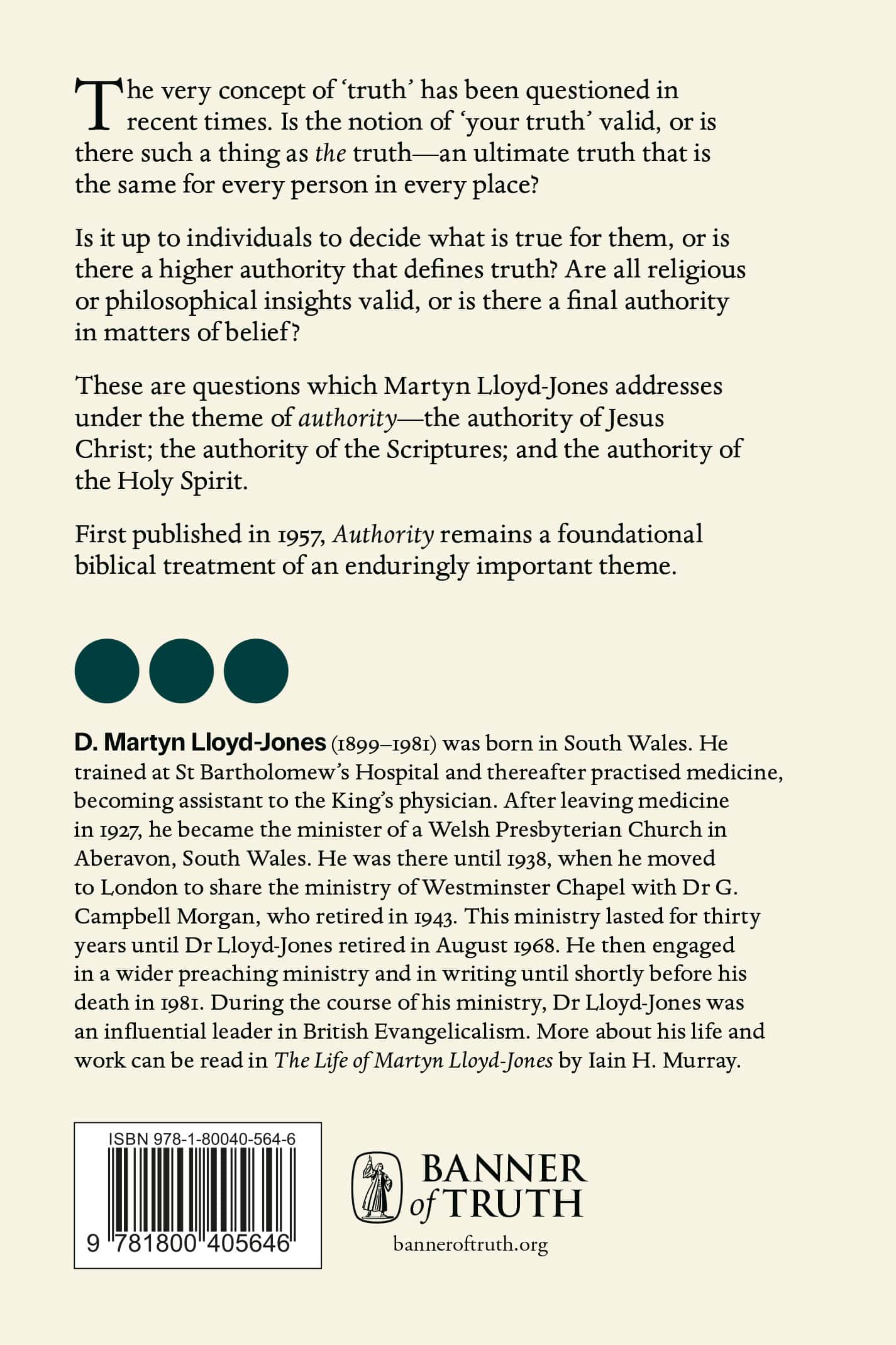 These are questions which Martyn Lloyd-Jones addresses under the theme of authority—the authority of Jesus Christ; the authority of the Scriptures; and the authority of the Holy Spirit.